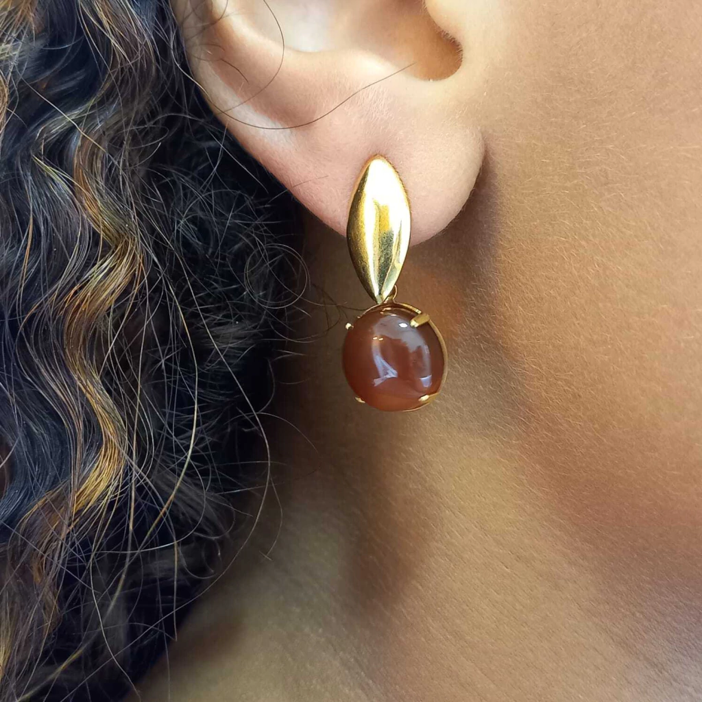 Este brinco banhado a ouro 18k combina sofisticação e força com sua belíssima ágata vermelha em lapidação lisa, que destaca a profundidade e brilho da pedra.